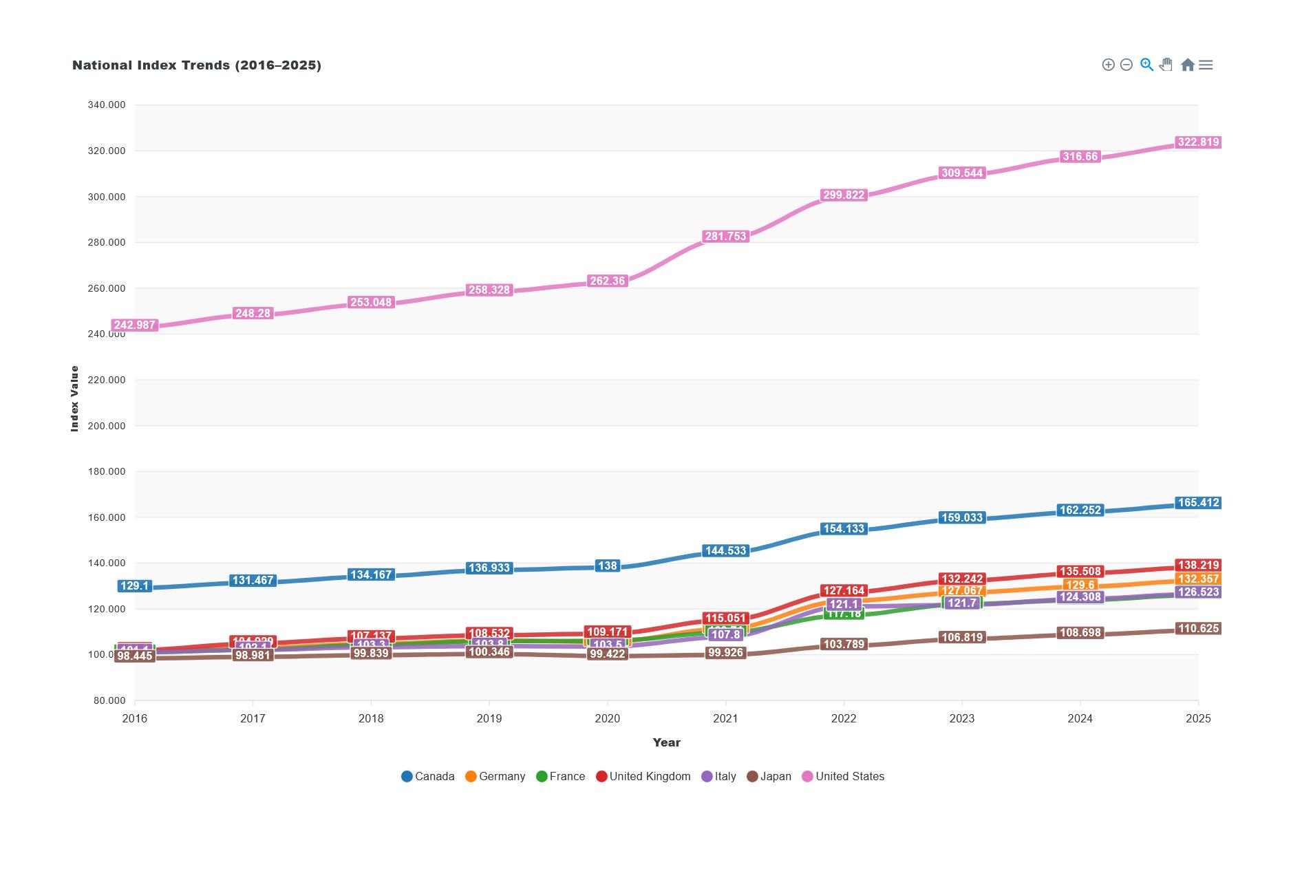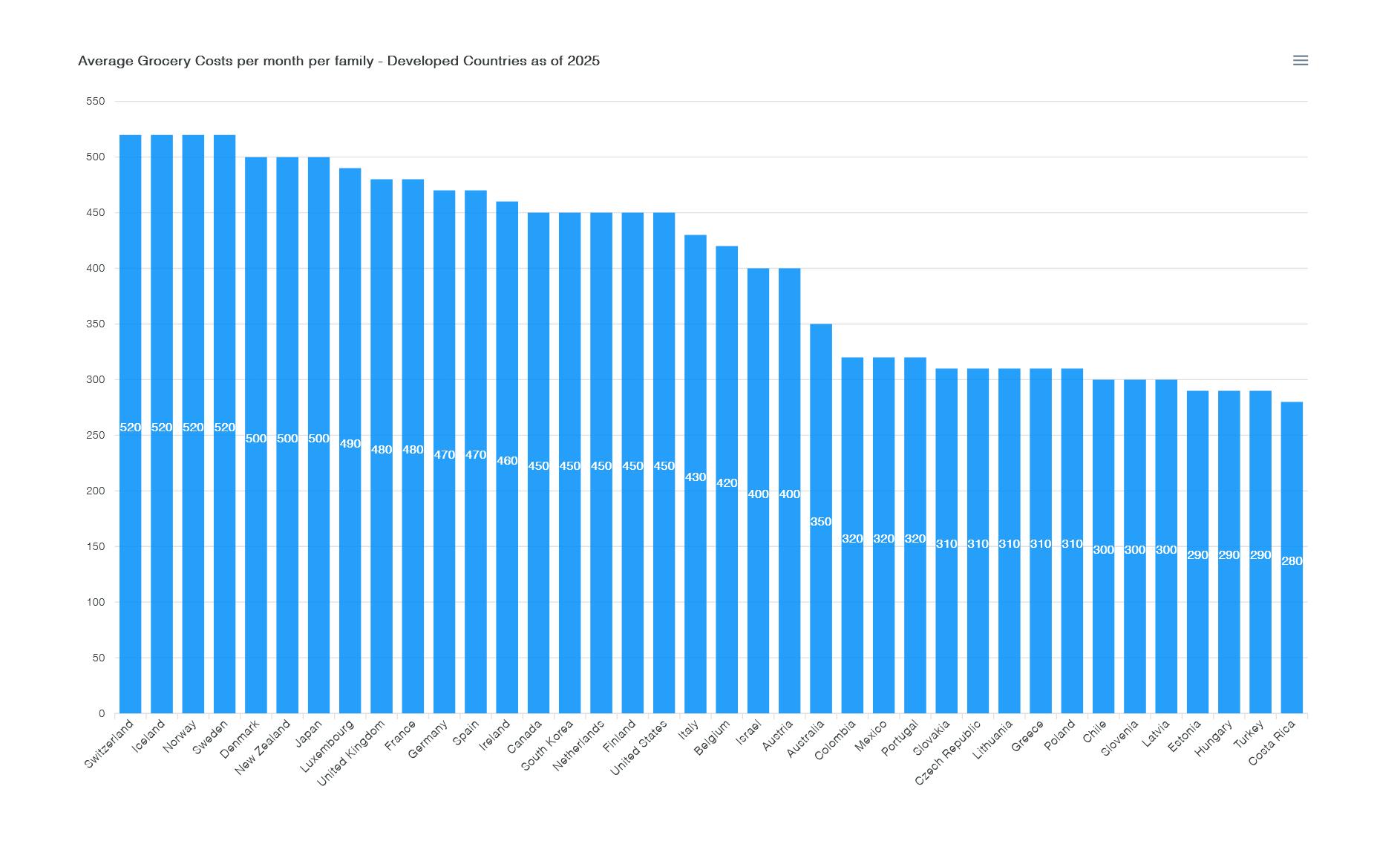 Average Grocery Costs per month per family – Developed Countries as of 2025