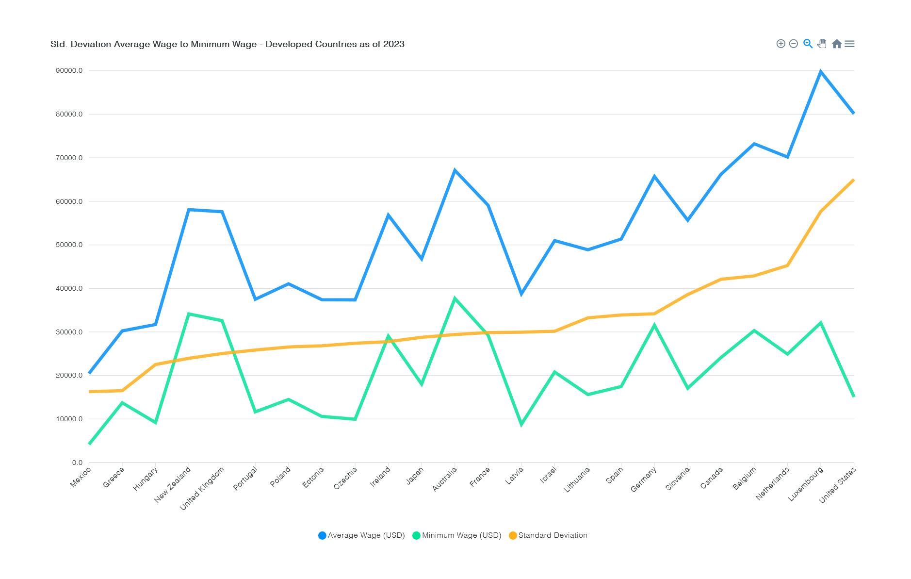 Std. Deviation Average Wage to Minimum Wage – Developed Countries as of 2023