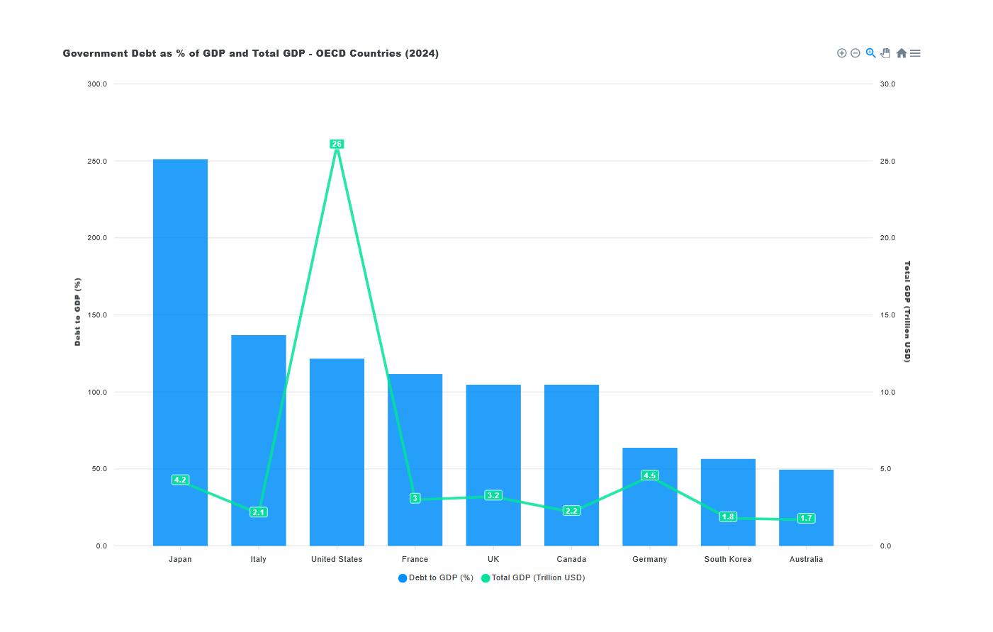 Debt as a Percentage of GDP – Developed Countries as of 2024